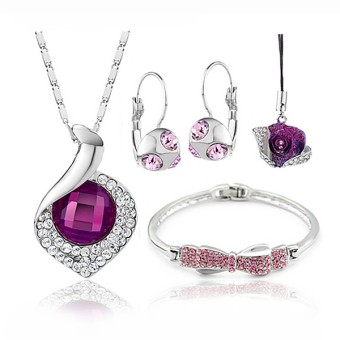 SET bijuterii fashion (cercei, bratara, lantisor si pandantiv) cu design deosebit, placate cu Platina si elemente de cristale Swarovski stralucitoare.