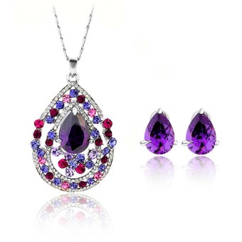 SET bijuterii fashion (cercei, lantisor si pandantiv) cu design deosebit, placate cu Platina si cristale de Zirconiu stralucitoare.
