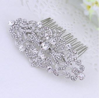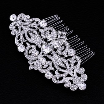 Un accesoriu de nunta special, bijuterie veritabila pentru mireasa cu un design de exceptie placata cu Aur alb 14k si cristale stralucitoare de diferite marimi.