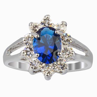 Inel tip logodna sau casatorie, elegant, modern, incantator, placat cu aur alb 18k, piatra semipretioasa Safir (creata in laborator) si cristale austriece stralucitoare.