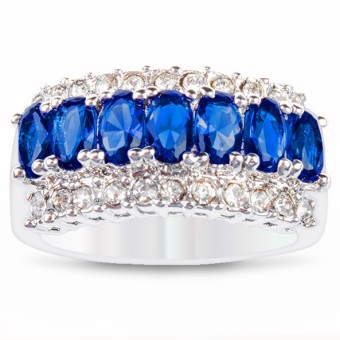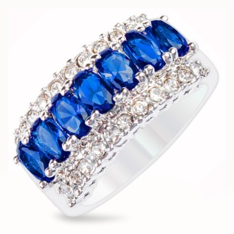 Inel de logodna elegant, placat cu aur alb 10k, pietre semipretioase Safir (create in laborator) si cristale stralucitoare.