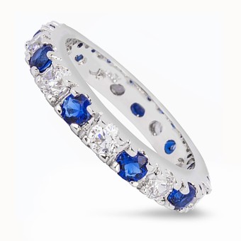 Inel de logodna elegant, placat cu aur alb 14k, pietre semipretioase Safir (create in laborator) si cristale stralucitoare.