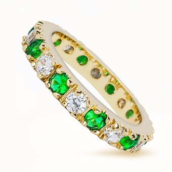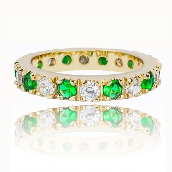 Inel de logodna elegant, placat cu aur galben 14k, pietre semipretioase Smarald (create in laborator) si cristale stralucitoare.