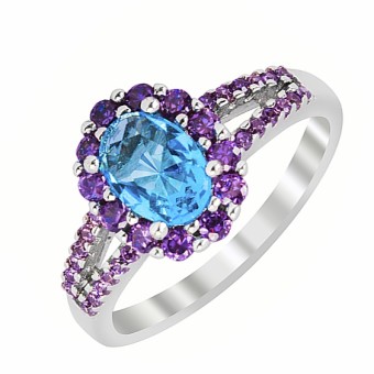 Verigheta veritabila din argint 925, placata cu platina, pietre semipretioase Blue Topaz si Ametist create in laborator, special pentru tine.