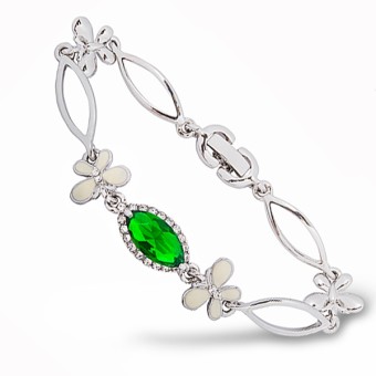 Bratara fashion cu design floral deosebit, placata cu platina si cristal Zirconiu de culoarea Smarald-ului.