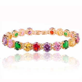 Bratara fashion placata cu aur galben de 14k si cristale Cubic Zirconia multicolore.
