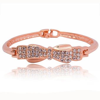 Bratara glamour unicat dedicata evenimentelor speciale, placata cu aur roz de 18k si cristale austriece Stellux.