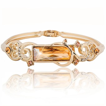 Bratara fashion cu design deosebit, placata cu aur galben 14k si elemente de cristale Swarovski stralucitoare.