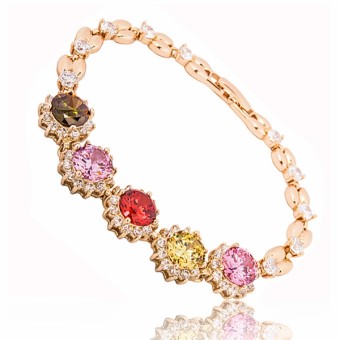 Bratara fashion cu motive florale, placata cu aur galben de 18k si cristale multicolore stralucitoare Cubic Zirconia.