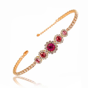 Bratara fashion cu design deosebit, placata cu aur galben de 18k si cristale austriece de culoarea Rubin-ului.