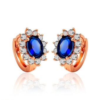 Cercei design special, placati cu pietre semipretioase Zirconiu culoare Safir si Aur roz 14k.
