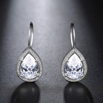Cercei cu design regal dosebit, placati cu pietre semipretioase Zirconiu culoare Diamant si Rodiu.