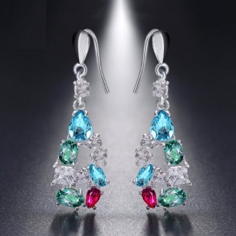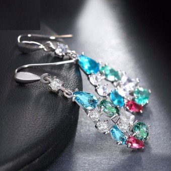 Cercei drop fashion dedicati momentelor tale deosebite, placati cu Argint 925 si cristale Cubic Zirconia multicolore.