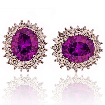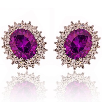 Cercei fashion dedicati evenimentelor speciale, placati cu aur alb de 14k si cristale austriece stralucitoare (tip Ametist).