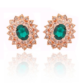 Cercei fashion, placati cu aur roz de 18k, piatra Austrian Cristal Stellux (culoare Smarald) si cristale stralucitoare.