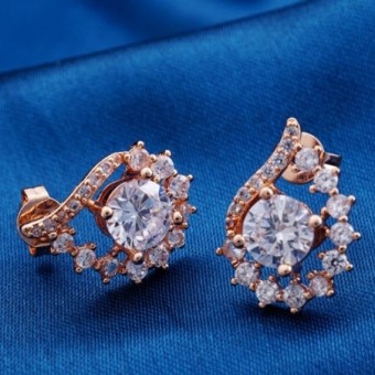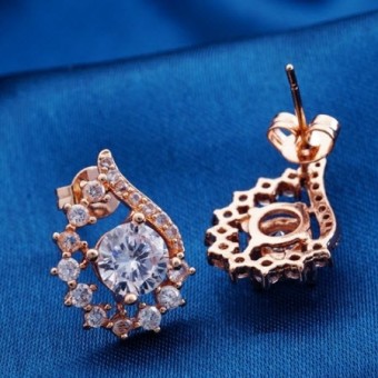 Cercei design unicat, placati cu pietre semipretioase Cubic Zirconia si Aur roz 14k.