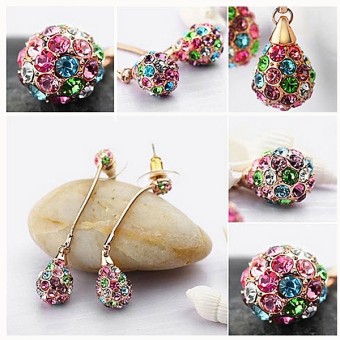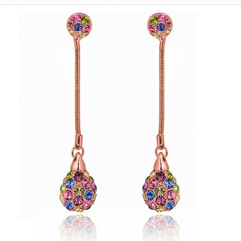 Cercei fashion pentru nunta si logodna, placati cu aur roz de 14k si cristale austriece stralucitoare multicolore.