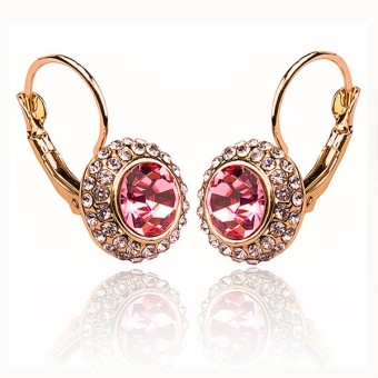 Cercei fashion, placati cu aur galben de 10k, piatra Cubic Zirconia (culoare Ametist) si cristale stralucitoare.