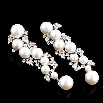 Cercei fashion dedicati evenimentelor speciale (nunta si logodna), placati cu Rodiu, perle de laborator si cristale stralucitoare.