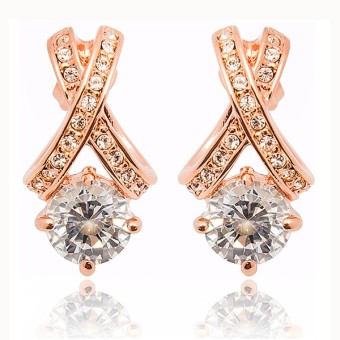 Cercei fashion, placati cu aur roz de 18k, piatra Austrian Cristal Stellux (culoare transparenta) si cristale stralucitoare.