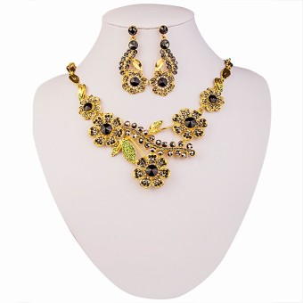 Un SET unic si incantator de bijuterii dedicate evenimentelor speciale din viata ta, accesorii unicat cu un design exceptional alcatuite din colier si cercei, placate cu Aur galben de 18k si cristale stralucitoare.