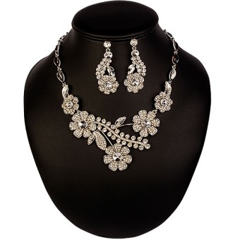 Un SET de bijuterii unic si incantator pentru nunta dedicate evenimentelor speciale din viata ta, accesorii unicat pentru mireasa cu un design exceptional alcatuite din colier si cercei, placate cu Aur alb de 14k si cristale stralucitoare.