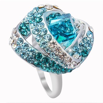 Inel glamour tip fashion, placat cu aur de 18k, pietre Cubic Zirconia (Aqua Blue) si cristale stralucitoare.