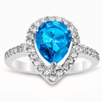 Inel glamour tip fashion, placat cu aur alb de 10k, piatra semipretioasa Acvamarin (creata in laborator) si cristale stralucitoare.