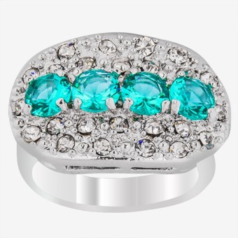 Inel elegant, placat cu aur alb 10k, pietre semipretioase Acvamarin (create in laborator) si cristale stralucitoare.