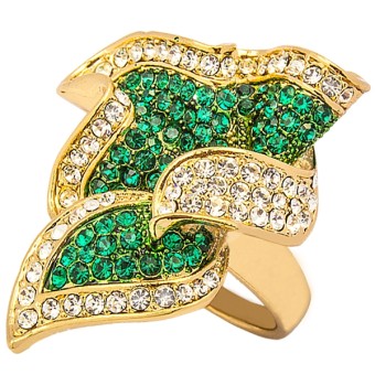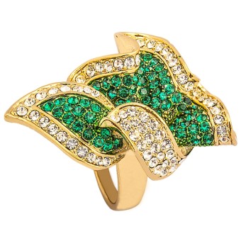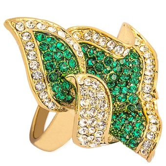 Inel elegant tip fashion, placat cu aur galben de 14k, elemente Swarovski si cristale stralucitoare.