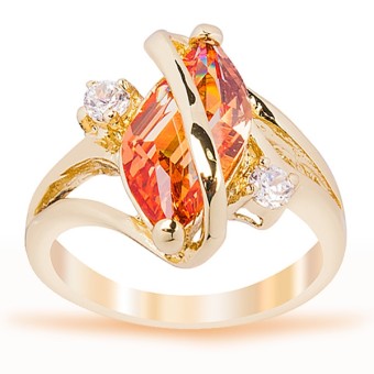 Inel fashion, placat cu aur galben de 14k, piatra semipretioasa Citrin (creata in laborator) si cristale stralucitoare.