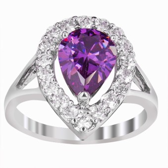 Inel logodna, elegant, modern, incantator, placat cu aur alb 18k, piatra semipretioasa Ametist (creata in laborator) si cristale austriece stralucitoare.
