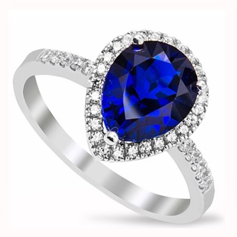 Inel din argint 925, placat cu rodiu, piatra semipretioasa Safir creata in laborator special pentru tine.