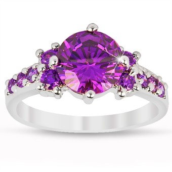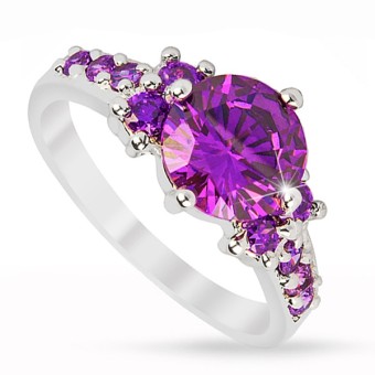 Inel fashion, placat cu aur alb de 10k, pietre semipretioase Ametist (create in laborator) si cristale stralucitoare.