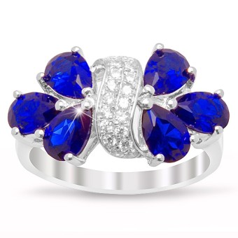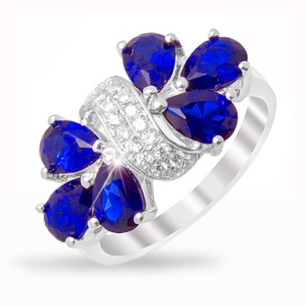 Inel din argint 925, placat cu rodiu, piatra semipretioasa Safir creata in laborator special pentru tine.