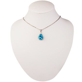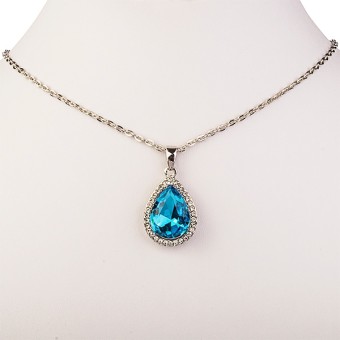 Lantisor cu pandantiv cu un design deosebit (culoare Blue Topaz), placate cu Aur alb de 14k si cristale austriece stralucitoare.