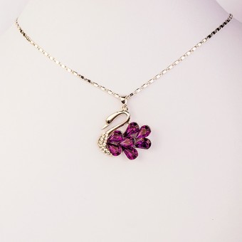 Pandantiv cu un design deosebit (lebada) si lantisor, placate cu Platina, elemente Swarovski si cristale stralucitoare.