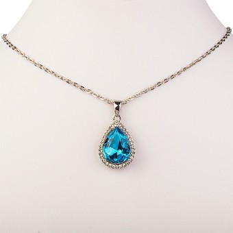 Pandantiv cu un design deosebit (culoare Blue Topaz) si lantisor, placate cu Aur alb de 14k si cristale austriece stralucitoare.