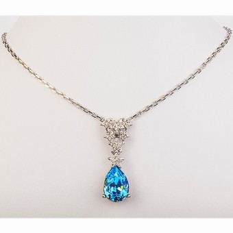 Pandantiv cu un design floral deosebit si lantisor placate cu Platina, elemente Swarovski (Blue Topaz) si cristale stralucitoare.