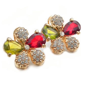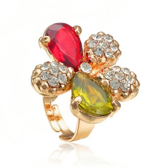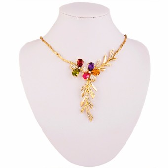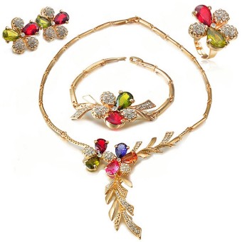 SET bijuterii eveniment (inel, bratara, cercei si colier) cu design deosebit, placate cu Aur galben de 18k si cristale austriece multicolore.