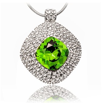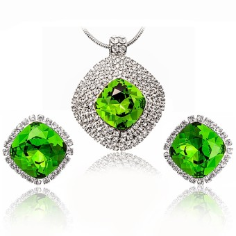 SET bijuterii fashion (cercei, lantisor si pandantiv) cu design deosebit, placate cu Platina si cristale de austricele Stellux stralucitoare, culoare Smarald.