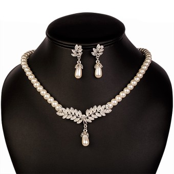 Un SET de bijuterii fashion dedicat special pentru tine, accesorii unicat pentru mireasa cu un design exceptional alcatuite din colier si cercei, placate cu Argint 925, perle de laborator si cristale stralucitoare.