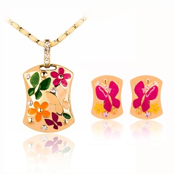 SET bijuterii fashion (cercei, lantisor si pandantiv) cu design deosebit, placate cu Aur galben 18k, si cristale stralucitoare.