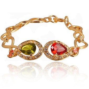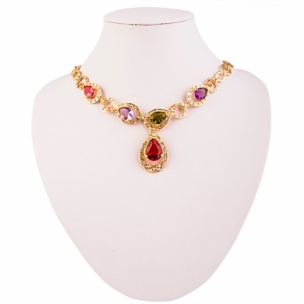 SET bijuterii glamour (inel, bratara, cercei si colier cu pandantiv) cu design deosebit, placate cu Aur roz de 18k si cristale austriece multicolore.