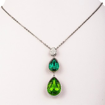 SET bijuterii fashion (cercei, lantisor si pandantiv) cu design deosebit, placate cu Platina si cristale de Zirconiu stralucitoare, culoare Smarald.