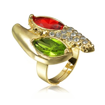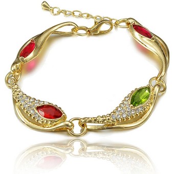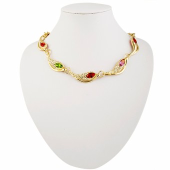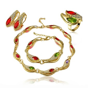SET bijuterii fashion (inel, bratara, cercei si colier) cu design deosebit, placate cu Aur galben de 18k si cristale austriece multicolore.