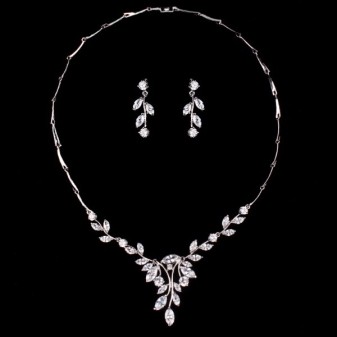 Set de bijuterii mireasa incantator (colier si cercei), bijuterii unicat pentru tine cu un design de exceptie placate cu Platina si pietre semipretioase Zirconiu.