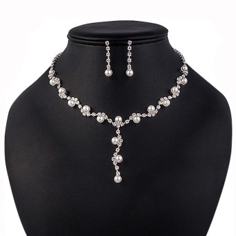 Un SET deosebit de accesorii dedicate evenimentelor speciale, bijuterii unicat pentru mireasa cu un design exceptional alcatuite din colier, cercei si tiara (diadema) placate cu Argint 925, perle de laborator si cristale stralucitoare.