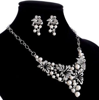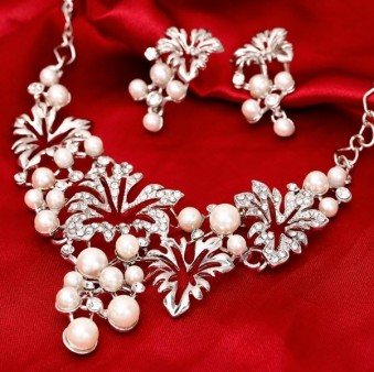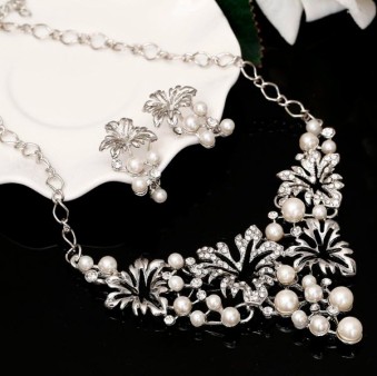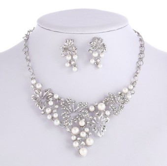 Set veritabil de bijuterii fashion pentru mireasa (colier si cercei), bijuterii adresate evenimentelor speciale din viata ta, cu un design de exceptie placate cu Perle si cristale stralucitoare.