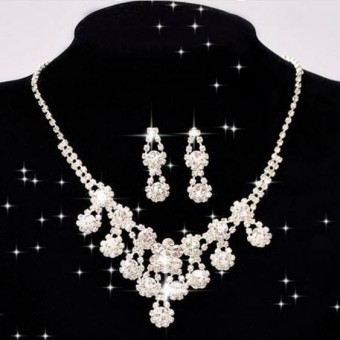 Set unic de bijuterii pentru mireasa (colier si cercei), bijuterii dedicate evenimentelor speciale, cu un design floral unic, placate cu Argint 925 si cristale stralucitoare.